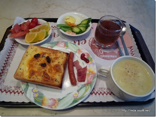 這樣一整盤的早餐,其實蠻豐富的,撐到中午都沒問題