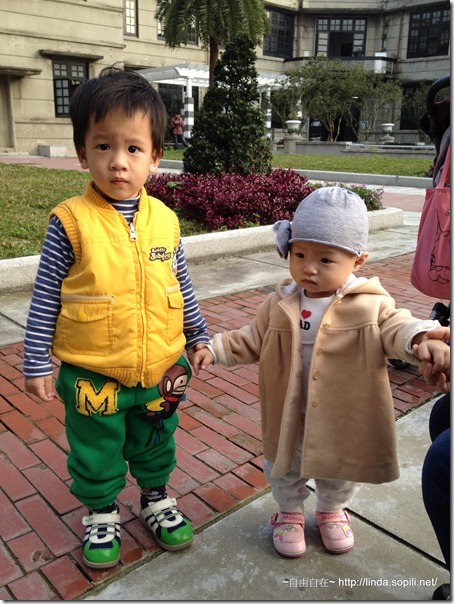 小男孩邊牽手邊讓我們拍照,眼神發呆的說著剛剛的恐龍展好可怕喔~~