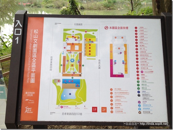 因光復南路這一側出入口封閉,請改從忠孝東路四段553巷進出。 (原聯合報巷口進來後,經刑事警察局,即看到本園區之生態景觀池與入園標示)